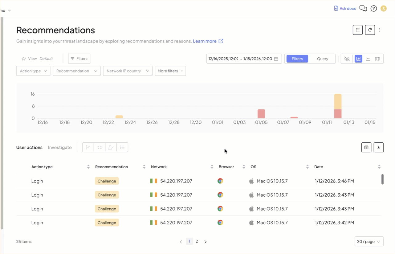- Manual risk review: Security Insights, Action ID, User ID