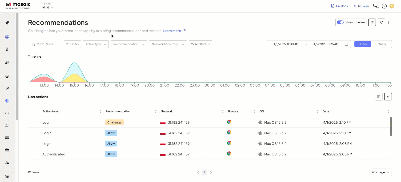 Use Views to quickly access filtered sets of recommendations based on user actions. Views let fraud analysts and response teams save a specific set of filters that match an investigation context—e.g., user actions performed in certain locations that lead to a specific recommendation type. This helps track relevant risk signals and investigate suspicious activity within a defined timeframe.