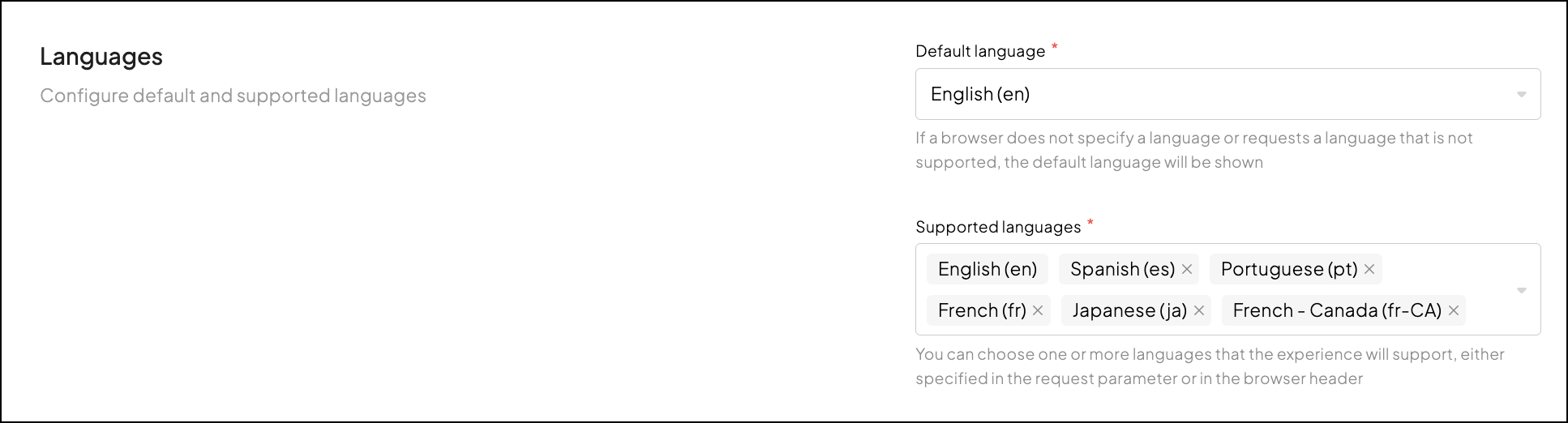 You can localize the login screen by selecting the default language and additional languages (B2C or B2B Identity based on your setup > Experience Management > Branding & language). If the browser locale matches one of the enabled languages, Mosaic will automatically provide UI in this language. Mosaic will proceed to a default language in case the browser doesn't specify the language to use or if the locale coming from the browser isn't supported by your app.