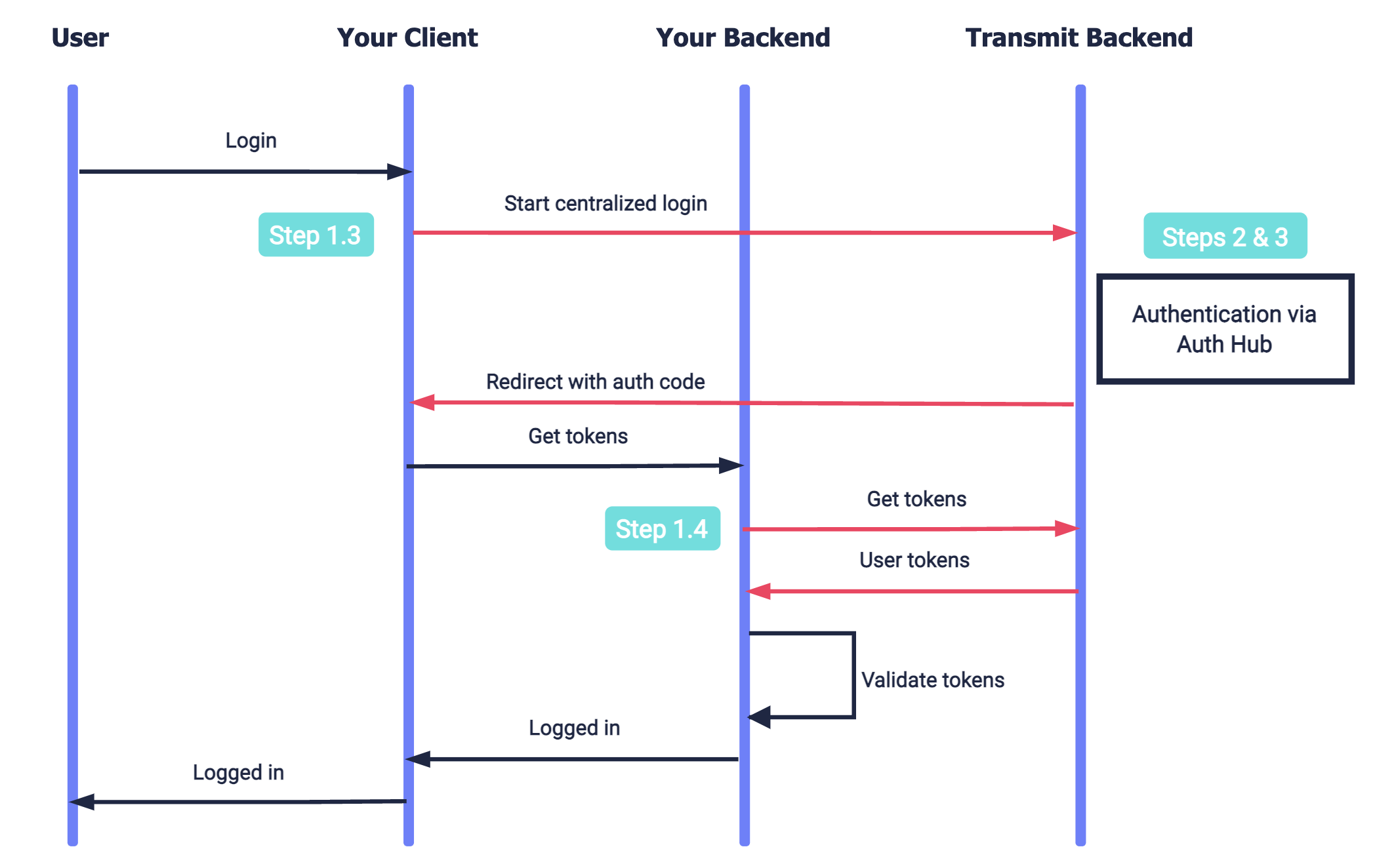 Set up your apps to perform a centralized login flow using the Authentication Hub. Instead of performing the end-user authentication, these apps will delegate it to the Authentication Hub: