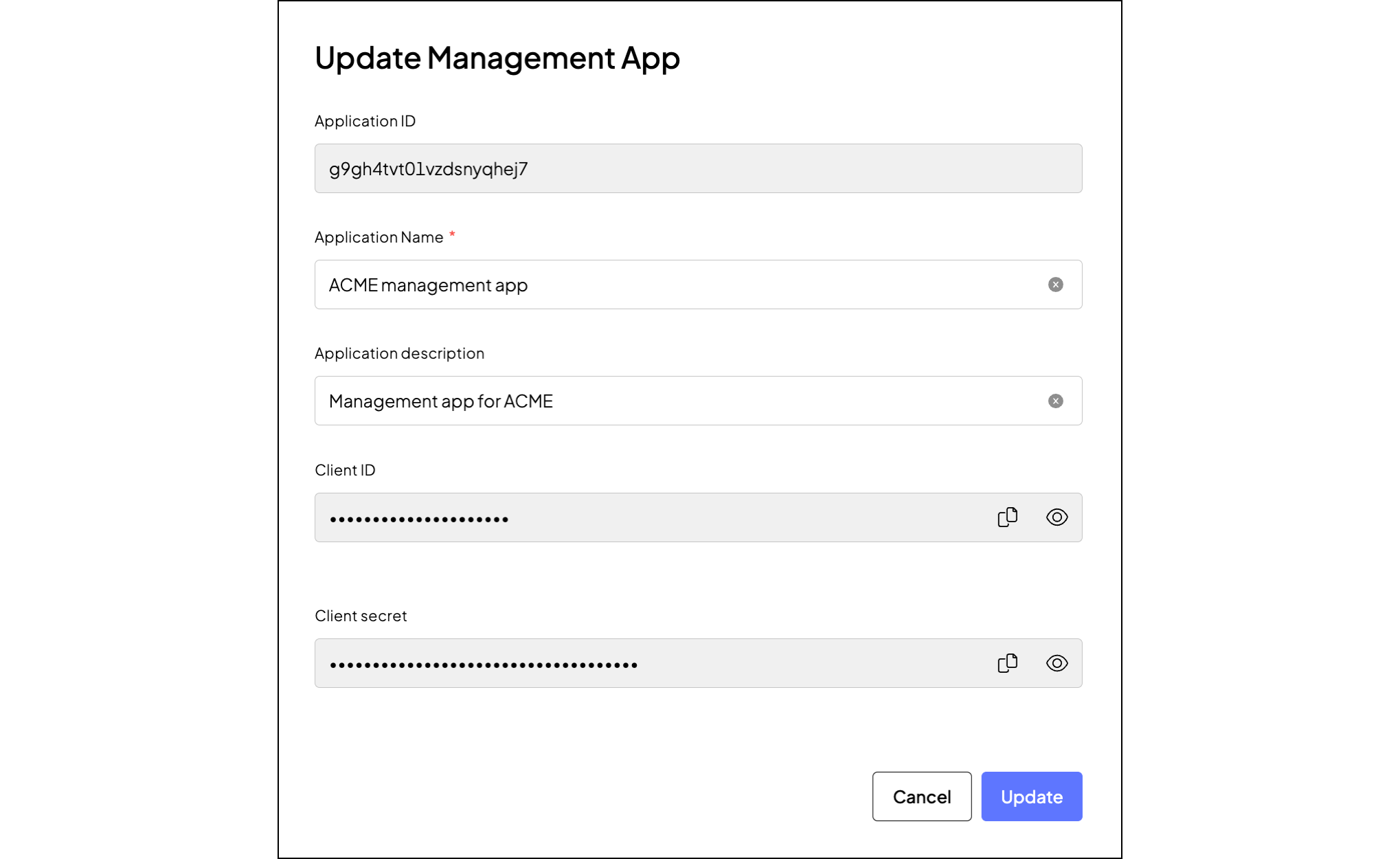 View, create, and update management apps either using Management APIs, or from the Admin Portal (as described below).