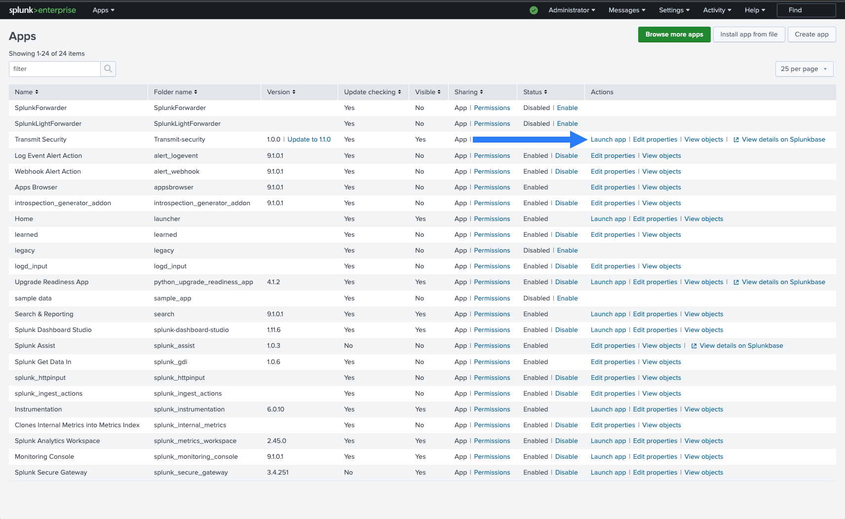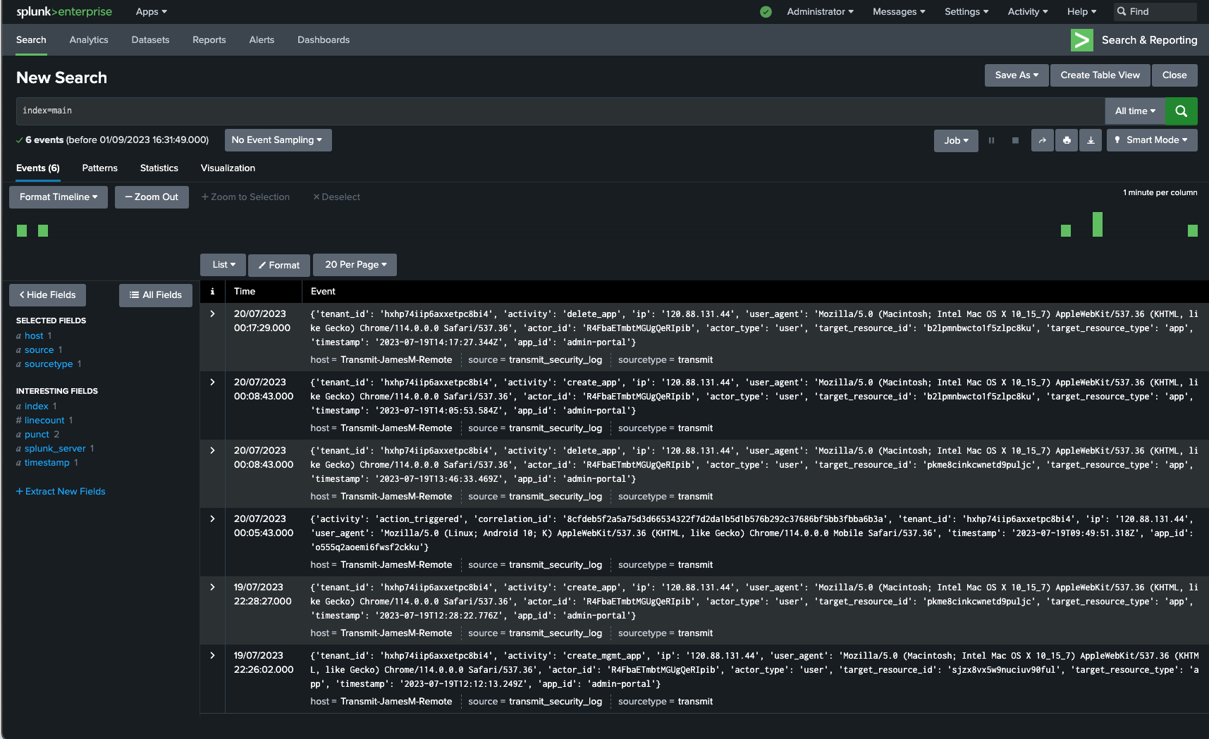 Check how the connector works using the Search app. Include sourcetype=transmit in the search bar. If the search isn't working, restart Splunk.