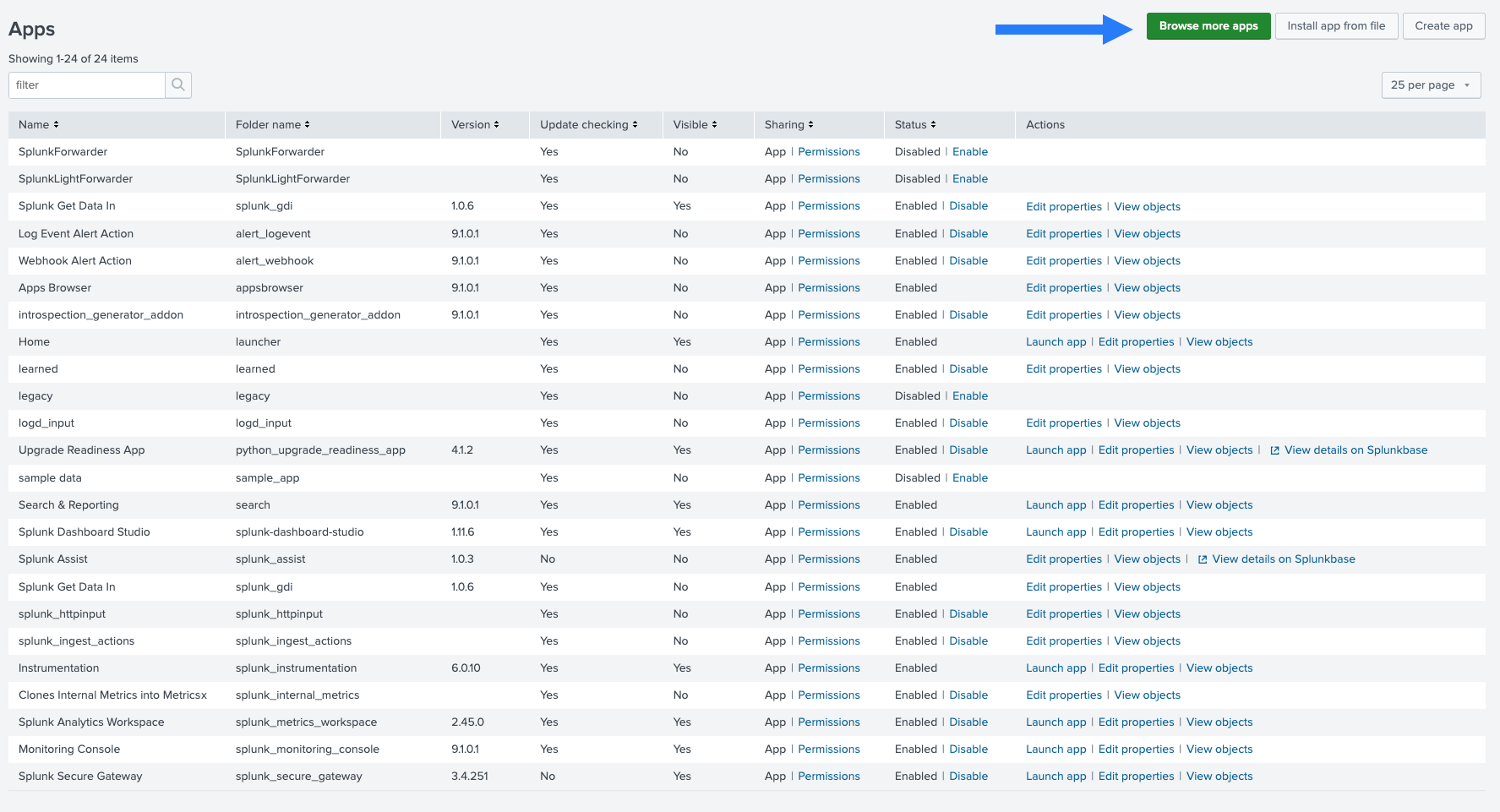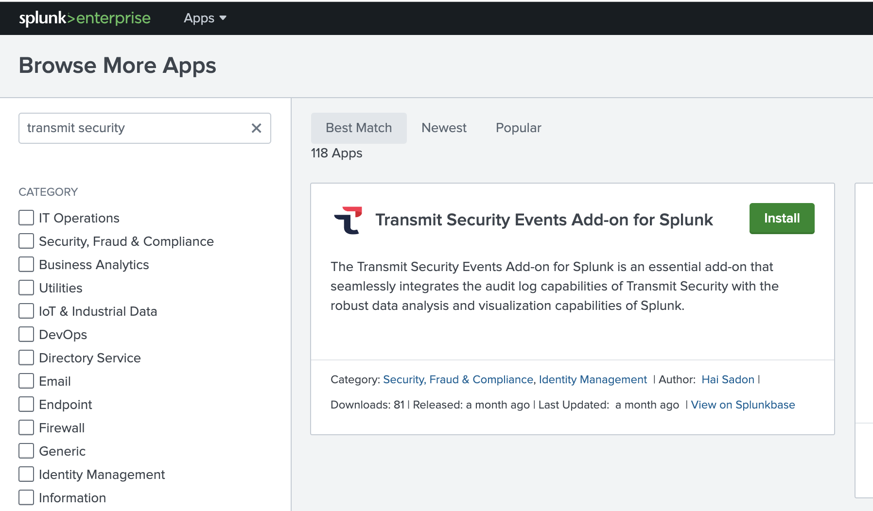 - Install the plugin directly from Splunk portal. This option supports both Splunk Enterprise and Splunk Cloud environments.