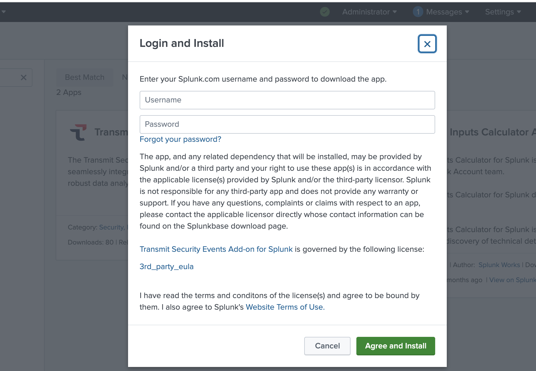 - Download the plugin and install it manually. This option only supports Splunk Enterprise environments and doesn't work for Splunk Cloud users.