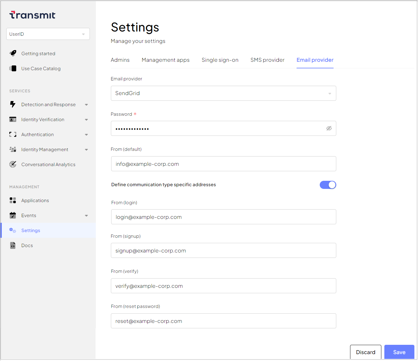 From Settings > Email provider, select SendGrid and enter the parameters: