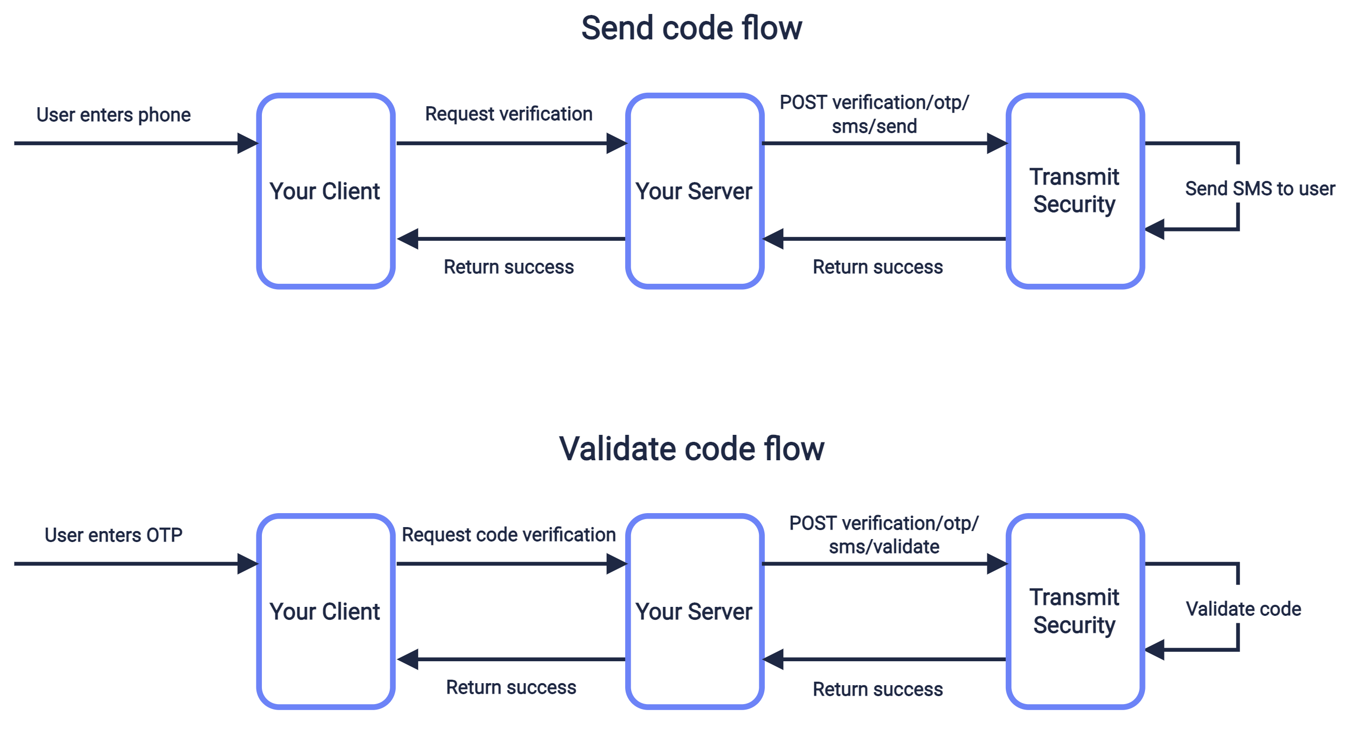 Use a send request like the one below to send an SMS OTP to the specified phone number. This flow is described in the sequence diagram above.
