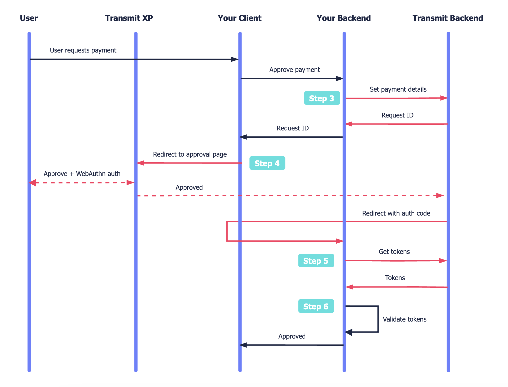 - User reviews the payment details and performs WebAuthn authentication to approve them.