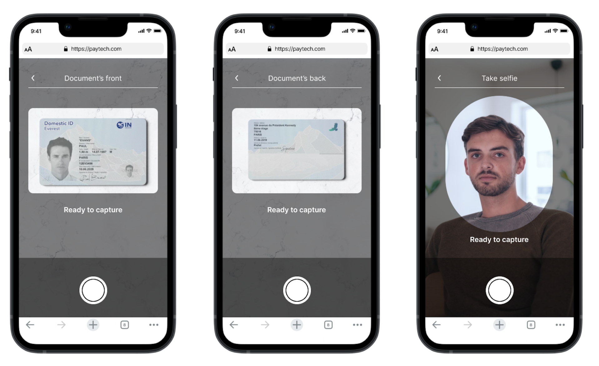 Capture ID document - The user captures images of the front and back of their government-issued photo ID using the camera of their mobile device. Real-time feedback and guidance on the technical quality of the image (lighting, sharpness, etc.) are provided. The document is auto-classified by type and country, and its authenticity is checked.